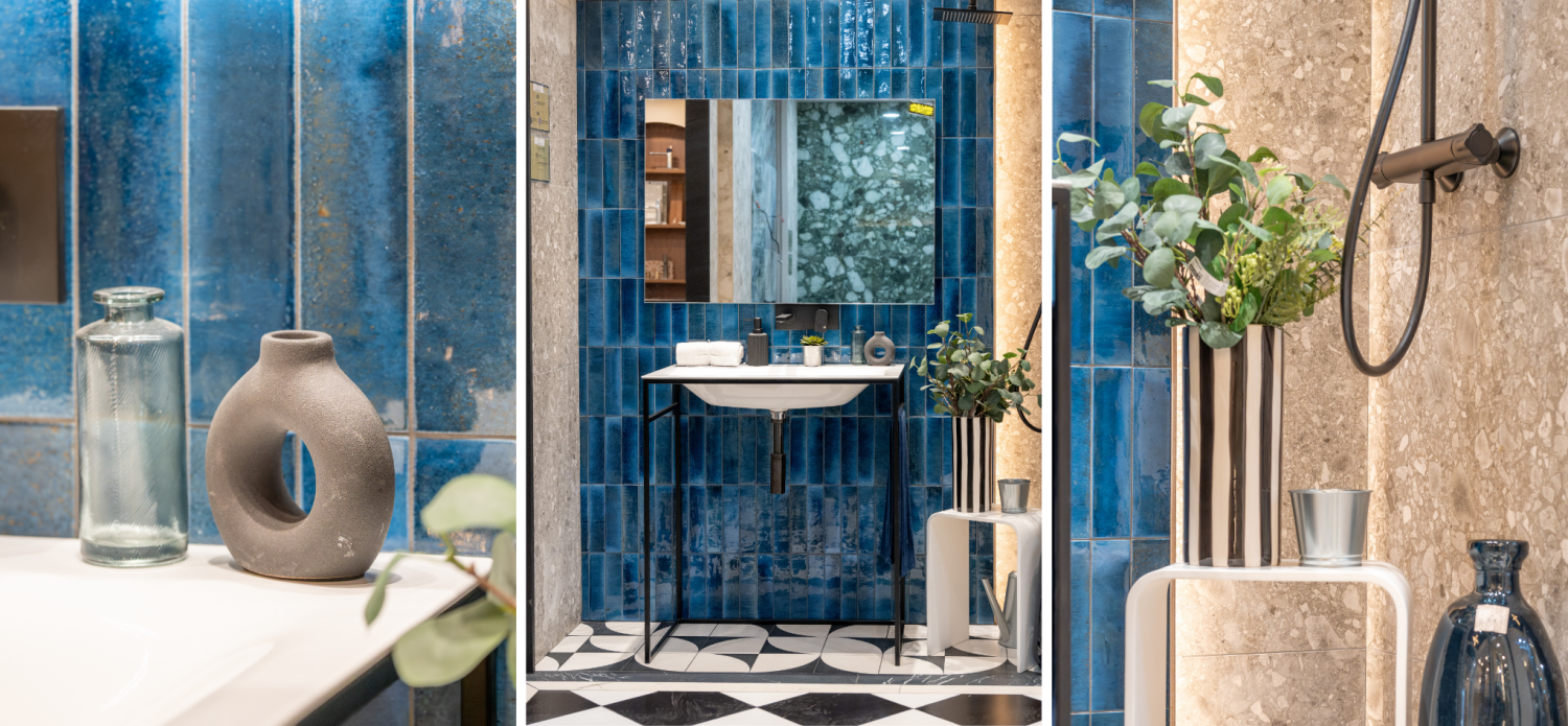 Le bleu s’impose comme une valeur sûre du carrelage en 2026. Dans une salle de bain, il apporte immédiatement du caractère, surtout lorsqu’il est associé à des carreaux graphiques ou à des finitions brillantes. C’est une teinte idéale pour créer une atmosphère à la fois apaisante et sophistiquée, parfaite pour les espaces dédiés au bien-être.