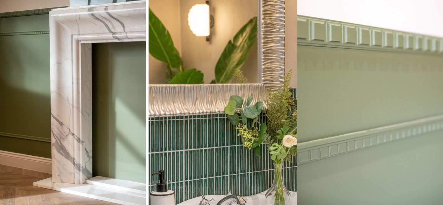 Grande star des tendances actuelles, le vert continue de séduire en 2026. Qu’il soit doux ou plus intense, il évoque la nature et crée une ambiance relaxante. Dans une salle de bain ou autour d’un élément architectural comme une cheminée, il s’intègre parfaitement dans un projet de décoration intérieure avec matériaux naturels. De plus, il se marie particulièrement bien avec des matériaux naturels comme la pierre ou le bois.